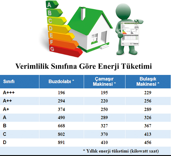 Enerji etiketi bulunan elektrikli ev aletlerini seçerek; alacağınız ürünün yılda ne kadar enerji tüketeceği bilgisine satın alma sırasında sahip olursunuz. “Enerji Verimliliği Etiketi” sınıflandırması bir cihazın yıllık enerji tüketimi bazında A, B, C, D, E, F ve G harfleriyle ifade edilen yedi gruptan oluşur. A harfi en düşük enerji tüketim sınıfını gösterir. A sınıfı bir elektrikli alet almanız durumunda ortalama enerji tüketiminden % 45 daha az enerji tüketirsiniz.