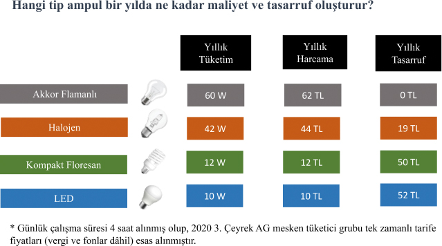2019 yılında ülkemizde tüketilen (faturalanmış) toplam elektrik enerjisinin % 24,5’i yani dörtte biri kadarı evlerimizde tüketildi. Bu oran yaklaşık olarak 56 Milyon Megawatt saate karşılık gelmekte. 2020 yılında ise Covid-19 salgınından dolayı evlerimizde geçirdiğimiz sürenin artmasına paralel olarak evlerimizdeki elektrik tüketim miktarı da artmış durumda.
