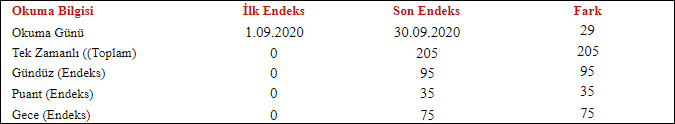 Yukarıdaki faturanın tüketim bilgileri alanına baktığımızda faturamızın 29 günlük olduğunu, toplamda 205 kWh tüketmek suretiyle: gündüz zaman aralığında 95, puant zaman aralığında 35 ve gece zaman aralığında 75 kWh tüketim yapıldığı görülmektedir.